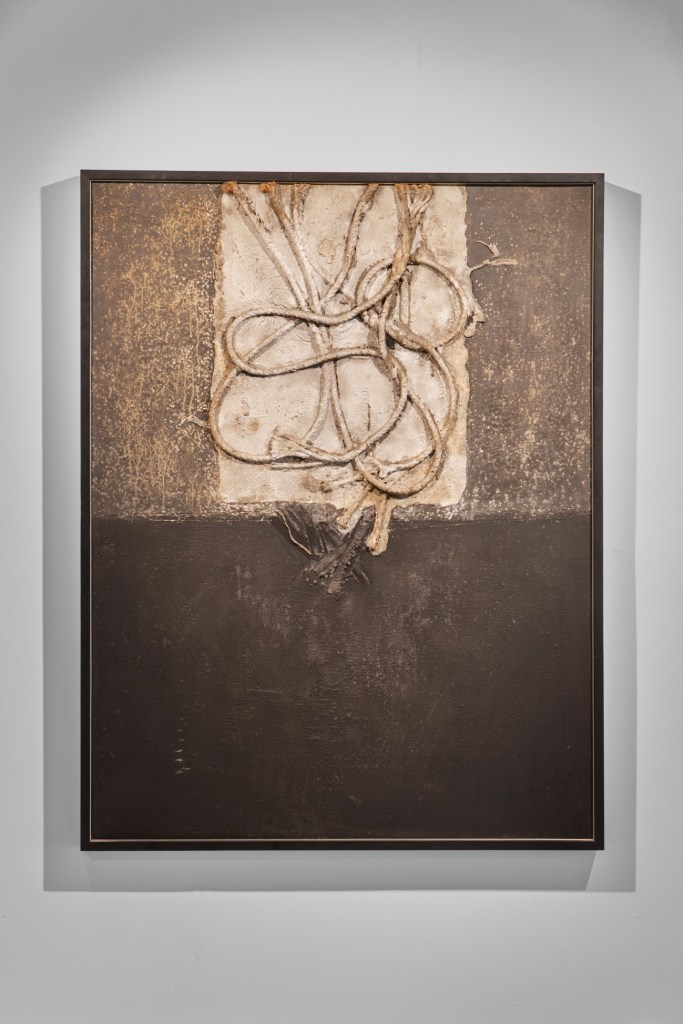 En esta obra se puede observar el gran uso de la materia y cómo va pasando de un plano real a uno abstracto mediante el uso de unas cuerdas y la variación del color.Es capaz de cautivar al espectador, no puedes apartar la vista de él.